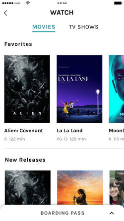 24 hours before your flight, you can browse the library of entertainment content available on your flight and be able to save content to favorites.
